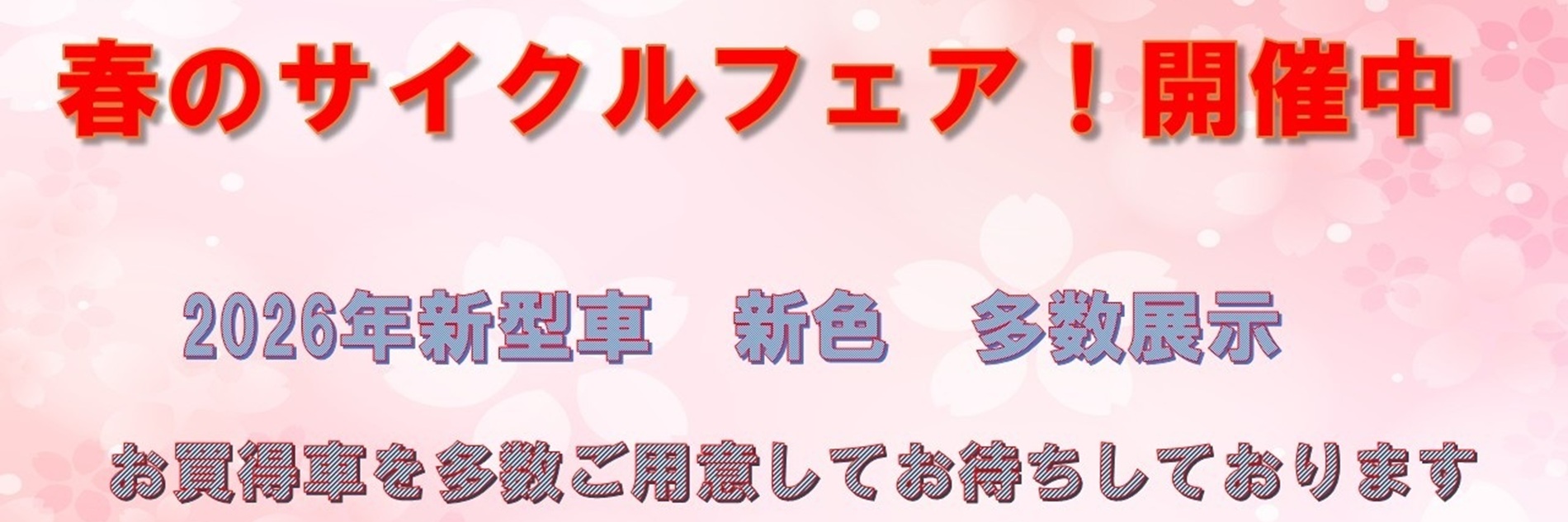 毎年恒例の自転車まつり、「お客様感謝セール」実施中です。 QUOカード(五〇〇円分)などがその場で当たる三角く… 続きを読む: 2025年3月より 「お客様感謝セール」実施中!!