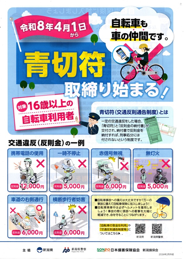 先般 新潟市東区役所へ行ったら 4月から始まる青切符についてポスターが貼られてました。