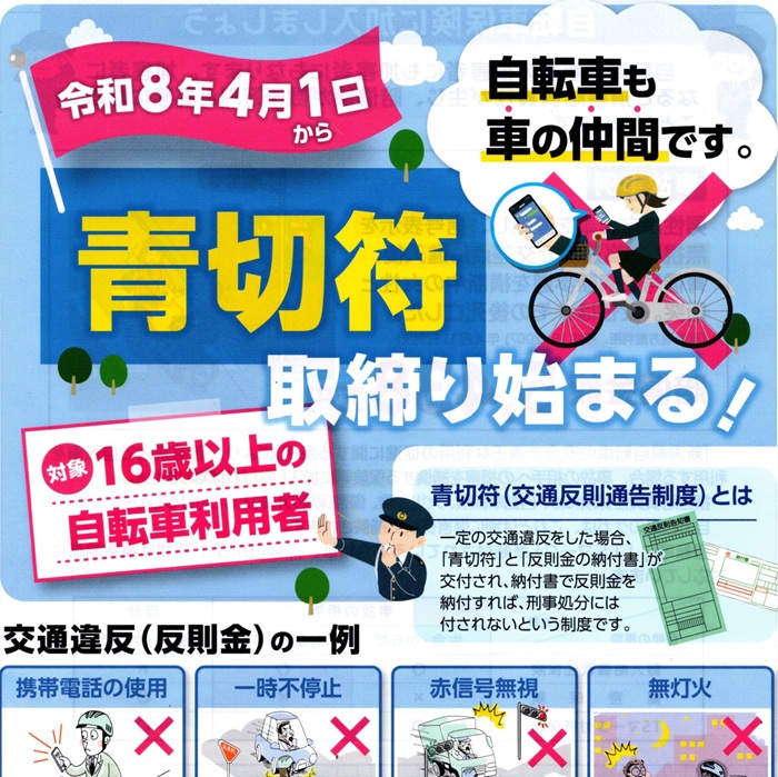 令和8年4月1日から 青切符取締り始まります。大丈夫かな?私・・